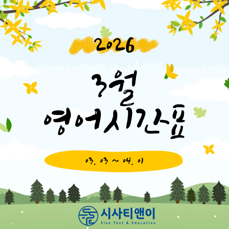 수업기간 : 2026.03.05 ~ 04.01 (총 8회) 봄이 시작되는 3월, 새 학기와 함께 영어도 새롭게 시작해보세요. 따뜻한 봄바람처럼 이번 달은 기초부터 자격증 대비까지 탄탄하게 준비했습니다. ✔ 초등 기초·중급 회화 ✔ 토익 BASIC / TOEIC Core ✔ OPIC Starter / OPIC BASIC ✔ G-TELP BASIC ✔ 스피킹 집중반 ✔ 중·고등 내신 대비 ✔ 주 3회 특강반 운영 평일 · 주말 모두 운영 학생 · 직장인 · 성인 맞춤 시간 선택 가능 조기등록 안내 조기등록 기간 2026.02.23 ~ 2026.02.28 오후 2시까지 해당 기간 내 등록 시 ✔ 수강료 할인 적용 ✔ 추가 동시수강 할인 가능 ※ 기간 이후 등록 시 정상가 적용됩니다. 3월 등....... <img src="https://blogthumb.pstatic.net/MjAyNjAyMTlfNCAg/MDAxNzcxNDc5NDI3Mjc3.PG4bJLUzcHeY8PRRZH5d9tzzt63hx-aQ6d9344V3-4Eg.W4b2BG7QVxcChlpD2f5MS2sPAM7muqSnx-zOUREG0qQg.PNG/1.png?type=s3" />
