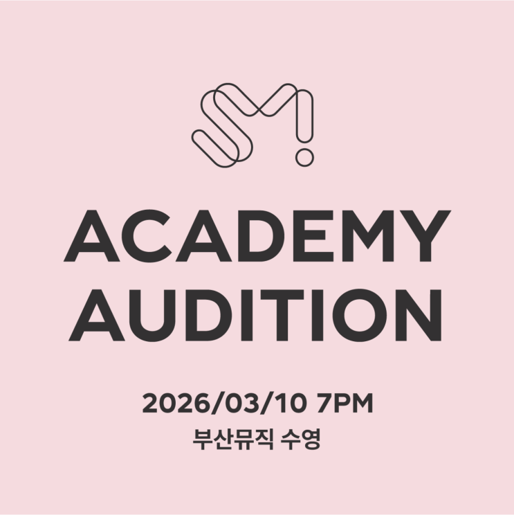 꿈의 시작! SM x부산뮤직실용음악학원 오디션 진행 ! 안녕하세요,부산뮤직실용음악학원 동래점 입니다! 따스한 봄기운이 찾아오는 3월, 우리 아이들의 꿈을 응원하기 위한 특별한 소식을 가져왔습니다. 글로벌 K-POP 열풍의 중심, SM 엔터테인먼트와 함께하는 내방 오디션이 부산뮤직 수영본원에서 진행됩니다! 이번 오디션은 잠재력 넘치는 원석들을 직접 발굴하기 위해 SM 신인 개발팀 관계자분들이 직접 방문하실 예정입니다. 평소 SM 소속 아티스트를 동경하며 연습해왔던 친구들이라면 이번 기회를 놓치지 마세요. 오디션 상세 일정 일시: 2026년 3월 10일 (화요일) 오후7시 장소: 부산뮤직 수영본원 대상: 성별, 국적무관 / 2007년생....... <img src="https://blogthumb.pstatic.net/MjAyNjAzMDRfMTE0/MDAxNzcyNjE3ODI5Njg5.af87GgVJtrUY7R5QihbTzq8Hugs82JVu_BpnwsIo24kg.eAfKVk8DPgUXZ0bwitTMLaUiCoimeuDUVWliDpz6Askg.PNG/260310_sm.png?type=s3" />