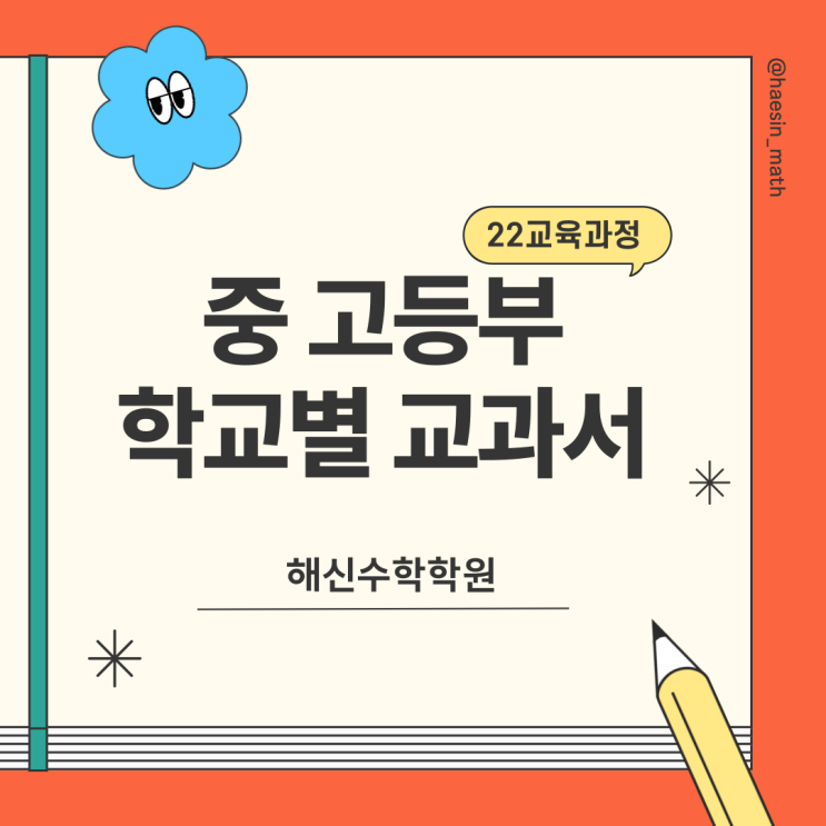 안녕하세요. "시작을 더 쉽게" 해신수학학원입니다. 새 학기가 시작됐어요! 이번 주다들 잘 보내셨나요? 새로운 교실에서 새 담임선생님, 새로운 친구들을 사귀면서 어색하지만 설레는 한 주를 보냈을 거 같아요. 해신수학을 다니는 아이들끼리 서로 같은 반이 되었다고 좋아하며 ' 우리 해신의 힘을 보여주자! ' 서로 격려하는 모습이 기특하고 좋은 부담으로 다가왔답니다. 아이들이 '근거 있는 자신감'으로 새로운 목표를 이룰 수 있게 최선을 다하겠습니다. 현 중1부터 고2까지 해당되는 중, 고등부 22 개정 교육과정 교과서 출판사 최신 목록입니다. 시중교재는 모두 교과서를 참고해 만들어지고 있습니다. 교....... <img src="https://blogthumb.pstatic.net/MjAyNjAzMDZfMjgy/MDAxNzcyODA2NzgyMzk4.2D3tTd8QF83VrDvdb8aj4mWM3cKNRun2-QlXECZM5ksg.llAwQXXzILKyrsXQIeYP0YZj0YoW7qWRAj68zzFiK2Qg.PNG/005.png?type=s3" />