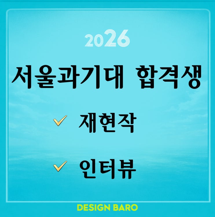 안녕하세요 부산입시미술학원 명륜동 디자인바로 미술학원입니다. 오늘은 정말 기쁜 소식을 전해드리려고 합니다. 2026학년도 서울과학기술대학교 디자인계열 합격생의 실제 시험을 기반으로 한 재현작과 합격생 인터뷰를 준비했습니다. 2026학년도 서울과기대 합격생의 실제 시험을 바탕으로 재현작과 솔직한 인터뷰 내용을 소개합니다. 서울과기대는 기초디자인에서 사고력과 화면 구성 능력을 중요하게 평가하는 대학으로, 실제 시험에서 어떤 방식으로 표현했는지 확인할 수 있도록 합격생 재현작을 먼저 소개해 드리겠습니다. 합격생이 실제 시험에서 어떤 방식으로 문제를 해석하고 화면을 완성했는지 확인할 수 있는 재현작입니다. 다....... <img src="https://blogthumb.pstatic.net/MjAyNjAyMjdfODQg/MDAxNzcyMTg4NDAxMDE4.As5M2fPuO0JSxR4LQhonmoGu54sXYYUETXDxv8bHkWUg.s84RbHOHN6ipnzwwKwfh-KbwBETPgHYSBMyWhceRtEwg.JPEG/2026%BA%CE%BB%EA%C0%D4%BD%C3%B9%CC%BC%FA.jpg?type=s3" />