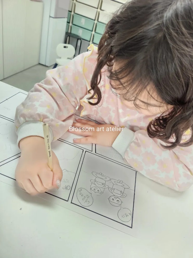 안녕하세요 블라썸 아트 아뜰리에 입니당 =) 새학기가 시작되었네요 ㅎㅎ 아이들은 방학지나고 학교간다고 싫다고 난리던데~~~ 책가방 매고 오는 아이들 보면 귀엽네요 새학기 아이들은 무엇을 준비해야 할까요? 바로바로 상상력과 이야기입니다!!!!! 스토리텔링 :: 나만의 만화 스토리~ 이번 수업은 나만의 만화 스토리 수업이에요. 아이들이 좋아하는 만화를 떠올리며 직접 캐릭터를 만들고, 이야기를 구성해 4~6장면의 그림으로 표현해 봅니다. 주인공은 어떤 친구일지, 어떤 사건이 일어나는지, 어떤 결말이 기다리고 있는지 아이들이 스스로 상상하며 이야기를 만들고 그림으로 풀어보는 시간이에요. 단순히 그림을 따라 그리는 것이 아....... <img src="https://blogthumb.pstatic.net/MjAyNjAzMDdfMjkg/MDAxNzcyODkyMzE2MTYx.6WrXM_3H9KGjFz-nTTcdK33bbxvUNx0kWtgrTRdQgbAg.BhPvWvrIn5YW60XhLp5uUilN1L5Agq8yUHn5gpTfV6Eg.JPEG/900%A3%DF1772892260703.jpg?type=s3" />