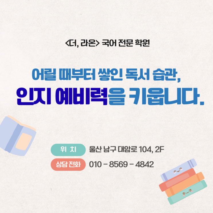 어릴 때부터 쌓인 독서 습관, 인지 예비력을 키웁니다. '<더, 라온> 국어 전문 학원'