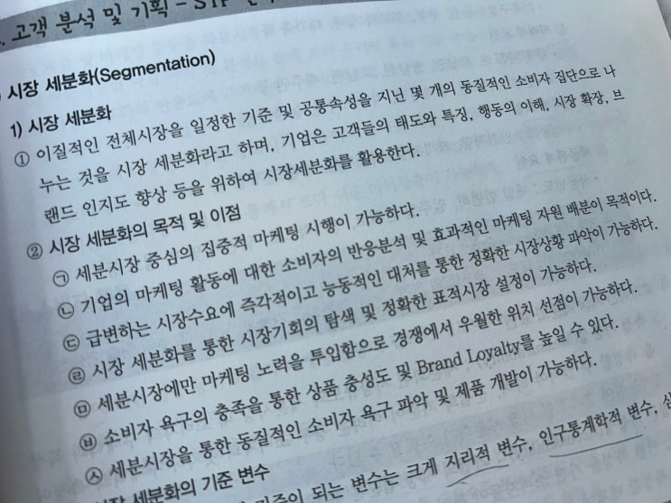 이질적인 전체시장을 일정한 기준 및 공통속성을 지닌 몇 개의 동질적인 소비자 집단으로 나누는 것을 시장 세분화라고 하며, 기업은 고객들의 태도와 특징, 행동의 이해, 시장 확장, 브랜드 인지도 향상 등을 위하여 시장세분화를 활용한다. 시장세분화는 집중적 마케팅 시행이 가능하고, 급변하는 시장수요에 즉각적이고 능동적인 대처를 통한 정확한 시장상황 파악을 가능하게 한다. 시장 세분화 요인에는 사회, 경제적 요인으로 남녀의 성별, 연령, 직업, 교육수준, 소득수준, 가족구성 등이 있고, 지리적 요인이나 심리적 요인, 제품관계 요인 등이 있다. 고객 세분화 요건으로는 구매행위와 태도, 시장의 크기, 접근 가능성, 수익 창출 가....... <img src="https://blogthumb.pstatic.net/MjAyNjAyMjVfOTkg/MDAxNzcxOTg1ODg2ODQz.3nsQZg93dYTejuvpgm57VaMYGue6IjKAoQ9dOxnazO4g.GeekksvE5YRgJ1DkeNzCF3h23MSwZJOP7o-Rbj9KeT4g.JPEG/KakaoTalk_20260225_111715230_02.jpg?type=s3" />