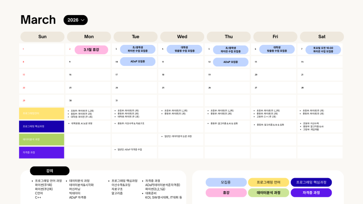 [3월]튜링랩 3월 달력