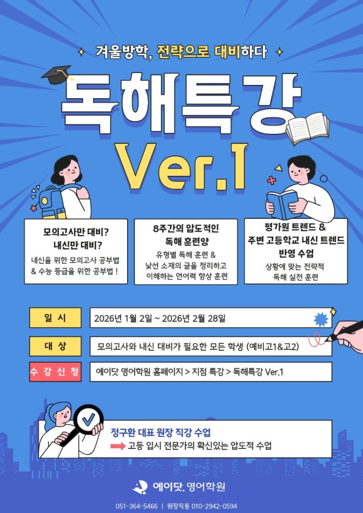 [화명동 영어학원] 겨울방학, 고등 독해 실력 제대로 만드는 시간은 바로 지금!
