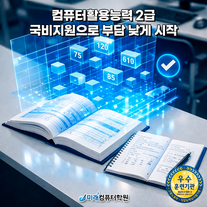부산 국비지원 컴퓨터활용능력 2급 준비, 엑셀 실전실무 심화학습까지 한 번에 배우는 미래컴퓨터학원