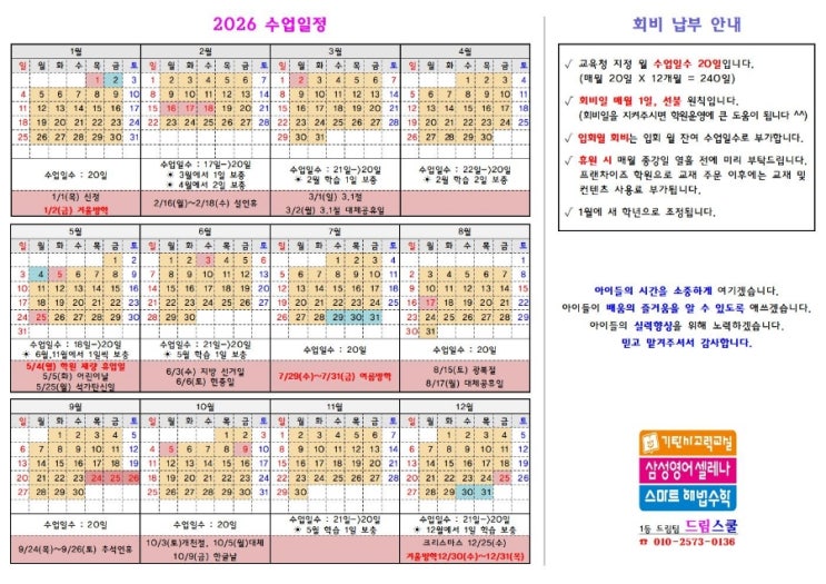 우리 아이들이 좋은 교육환경 속에서 저마다의 속도에 맞춰 학습하여 실력이 향상될 수 있도록 2026년도에도 모든 강사진들이 연구하고 노력하겠습니다. 믿고 맡겨주셔서 감사합니다! <img src="https://blogthumb.pstatic.net/MjAyNjAxMDFfMjMx/MDAxNzY3MjMzMTczMjk4.eiSjsNFc6fdH777Nm6JIo1EPGpJglAcrhST57l3lf1Eg.Fsmjspz9coDnciu9sv82EOEw9Rjqh1u30NbjnKqFws8g.JPEG/900%A3%DF1766915156010.jpg?type=s3" />
