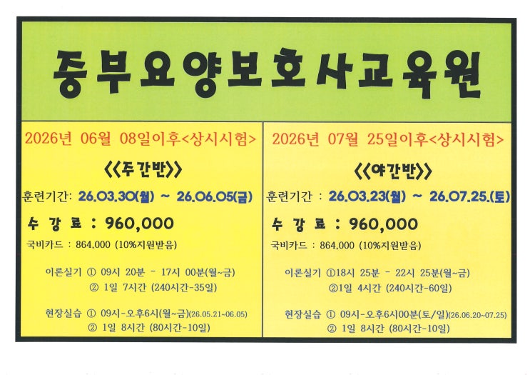 주간반(3.30~)야간반(3.23~)개강안내[중부요양보호사교육원]