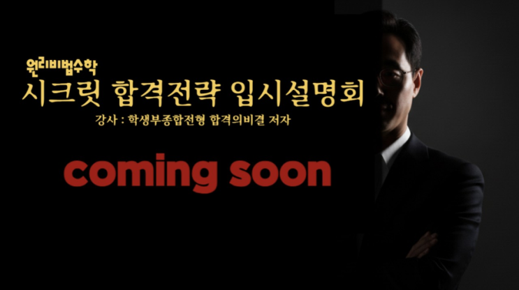 coming soon 원리비법 시크릿합격전략 입시설명회