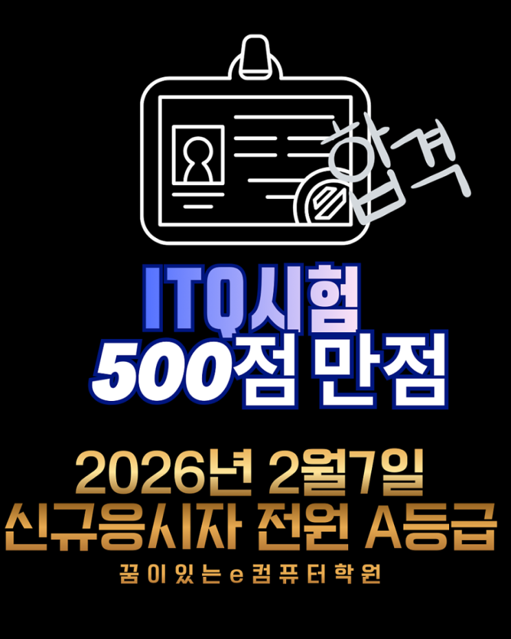 (축하)ITQ자격증 시험 500점 만점을 축하합니다!!