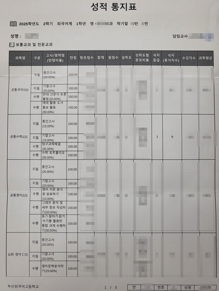 안녕하십니까 명작수학입니다. 부산외국어고등학교에서 2학기 전교 6등을 달성한 학생과 인터뷰를 진행했습니다. 센텀명작수학에서 부산외고반을 수강한 학생입니다 인터뷰에서는 학생의 생각을 생생하게 전달하기 위해 문맥을 가다듬는 수준으로만 정리했습니다 Q1. 이제 고2가 되었는데, 입학할 당시와 지금의 학교에 대한 느낌은 어떤가? 입학할 당시에는 교실이 더러운 느낌이 없지않아 있었는데 외적으로 깨끗해진 학교를 보며 새로운 마음가짐으로 2학년을 준비해야겠다고 생각했다. Q2. 입학할 당시에 학교에 대한 막연한 불안감이나 기대감이 있었나? 특목고다보니까 친구들이 다 공부를 압도적으로 잘할 것 같았는데 막상 첫 모의고사를....... <img src="https://blogthumb.pstatic.net/MjAyNjAyMjhfMTAy/MDAxNzcyMjg0NTk5NDQ0.bgSzeJol7YJHJK6kH0zWYcvAuvaqJu7nLqYZyboU_wUg.582s4xOtsejAkdugLR4OlYOSvrRme_QCr8eLnZyci1Ag.PNG/image.png?type=s3" />