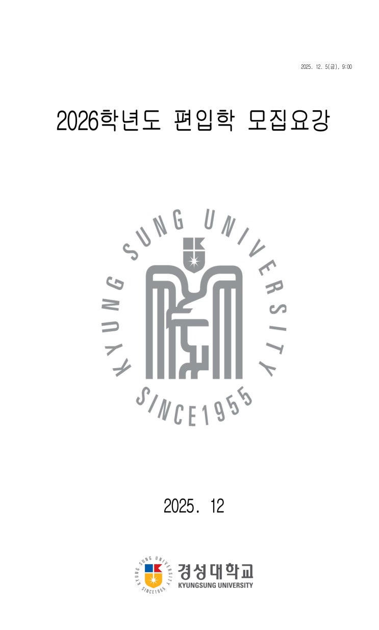 2026 학년도 경성대학교 편입모집전형 <img src="https://blogthumb.pstatic.net/MjAyNjAyMjZfNDkg/MDAxNzcyMDY2NTcwMzc1.W6AN1bRZ_Hyx_CF-8szAhraSQywftW2ocwKUEi4S4-wg.SD1ns7abYw4M0iOOACSdJIT6PtRA2Hn1cjGXgbtr2eAg.JPEG/2026_%C7%D0%B3%E2%B5%B5_%B0%E6%BC%BA%B4%EB%C7%D0%B1%B3_%C6%ED%C0%D4%B8%F0%C1%FD%C0%FC%C7%FC_%C6%E4%C0%CC%C1%F6_01.jpg?type=s3" />