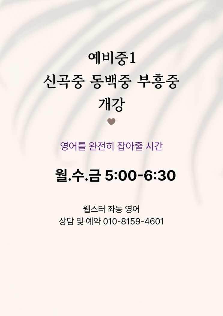 [좌동 장산 영어] 예비중1 개강 신곡중 동백중 부흥중