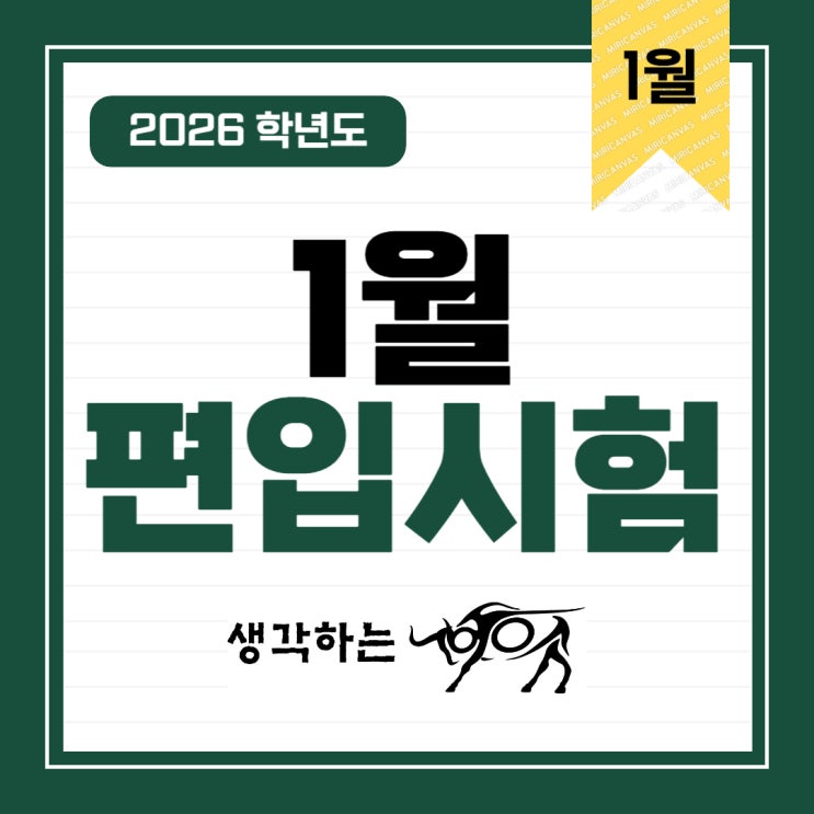 <편입 시험 유의 사항> - 대상 학년은 2026년 예비 학년이며, 대상 학년이 아닌 경우에는 무효 처리됩니다. - 시험은 수강하고자 하는 지점에서 진행해야하며, 시험 후 임의로 수강 지점을 변경할 수 없습니다. - 편입은 결원 충원이므로 모집 인원은 확정되지 않는 경우가 더 많습니다. - 편입 시험일이 여럿인 경우 먼저 응시한 학생이 반배정 우선권을 갖습니다. - 같은 종류의 편입 시험에 재응시 할 수 없습니다. <편입 시험 예약> - 편입 시험은 사전 예약한 학생만 응시 가능합니다. - 편입 시험은 시험일 한달 전부터만 아래 번호로 전화하여 예약하실 수 있습니다. 전화) 051-702-2558 - 편입 시험 응시 시간 : 오후 12:00 ....... <img src="https://blogthumb.pstatic.net/MjAyNjAxMDZfMjU3/MDAxNzY3Njk4MDE2ODY3.TufyYwKZBD0FLjdhvh7DW4MZHRlEGH1WiMWVBOCs36Ig.QW4XH6BUOl7tCeiUsibWCnwQlikwRqFTWUzEs16M8n0g.JPEG/KakaoTalk_20260106_200217456.jpg?type=s3" />