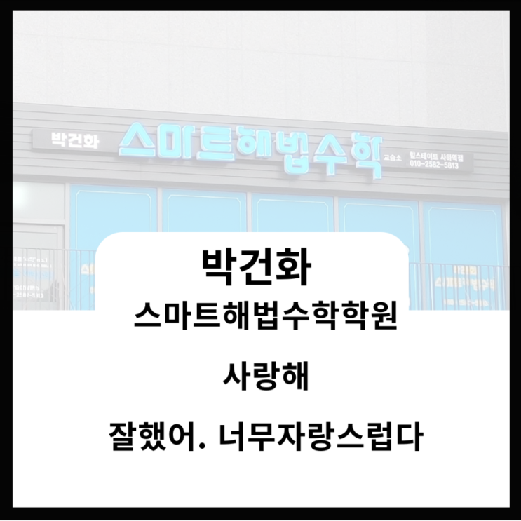 보이지 않는 곳까지 세심하게, 박건화스마트해법수학이 아이를 대하는 진심 안녕하세요, 사하구 부모님들의 든든한 교육 파트너 박건화스마트해법수학학원입니다. 처음 아이를 수학 학원에 보내기로 마음먹었을 때, 부모님들의 마음속에는 수많은 질문이 떠오릅니다. "우리 아이가 진도는 잘 따라가고 있을까?" "모르는 문제를 그냥 넘어가는 건 아닐까?" "혹시 학원 구석에서 기죽어 있지는 않을까?" 성적표에 찍히는 점수는 눈에 보이지만, 학원에서 아이가 어떤 표정으로 앉아 있는지, 어떤 과정으로 문제를 풀고 있는지는 부모님의 눈에 보이지 않습니다. 그래서 부모님들은 늘 불안합니다. 박건화스마트해법....... <img src="https://blogthumb.pstatic.net/MjAyNjAzMTZfOTgg/MDAxNzczNjcxMjY1MDYz.KTV5m4Ut7wyrHkyAp6xMPLC_IhQG9W1-DMUzctvtbJ4g.jygKqSaXmtPp7tKGZtVpzp7RUiFsss2AEi-eNqf74I4g.PNG/900%A3%DF260302%BA%ED%A3%AD001.png?type=s3" />