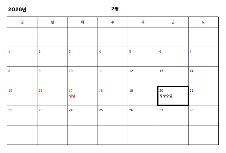 26년 2월 수업일정 ♪