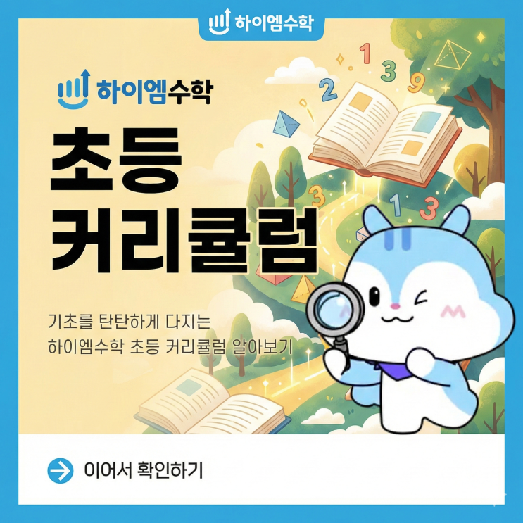 하이엠수학 초등 커리큘럼 안녕하세요, 메가스터디교육이 만든 초∙중등 수학 브랜드 하이엠수학입니다. 초등 수학 왜 중요할까요? 수학은 위계가 있는 과목으로 한 단계씩 차근차근 쌓아가야 합니다. 배우는 순서가 정해져 있기 때문에, 중간에 놓친 개념은 학습 공백으로 이어지고 이 공백이 누적되면 결국 큰 격차가 만들어지죠. 하이엠수학 초등 수학 계통도 특히 많은 교육 전문가는 초등 3학년과 5학년을 '수학 학습의 분수령'으로 꼽습니다. 3학년에는 나눗셈, 분수, 소수 등 앞으로의 수학을 떠받치는 핵심 개념들이 처음 도입되고, 5학년에는 분수의 사칙연산처럼 난도가 확 뛰어올라 단기간 공부로는 따라잡기 힘들기 때문이....... <img src="https://blogthumb.pstatic.net/MjAyNjAyMDRfOTAg/MDAxNzcwMjE1NTQxOTgz.Us5pn0kbeVEm06OzooO5p6Kgx_dNR_kPqFp9TSqV5Ecg.M9mS-kfkGfyF_j53b_NIU_QaEAwqnOPvwZx780QOuA8g.PNG/Gemini_Generated_Image_dk6ngfdk6ngfdk6n.png?type=s3" />