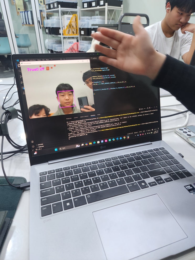 얼굴이 인식되면 등교 시간을 기록하고, 다시 인식되면 하교 시간을 기록하는 프로그램 만들어 보자 <img src="https://blogthumb.pstatic.net/MjAyNjAyMjdfMjE5/MDAxNzcyMTgyMDAxNTY3.3dm5Dvl_2PwaK2OH3sHF9hF7ZytYeiIXbsUbm1O-VQ8g.bx7PyNUW8rqm3uksMdfRd9IhsjBxZrGo0XGL4OKbJk0g.JPEG/KakaoTalk_20260227_174148415.jpg?type=s3" />