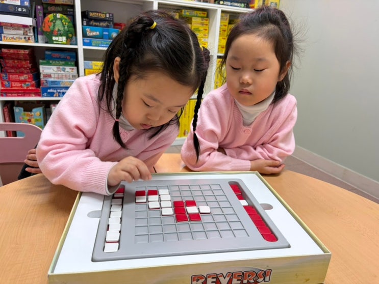#오르다 - 조각뒤집기 상대방의 색깔 조각을 가두어 자신의 색으로 만들어자신의 영역을 넓히는 게임입니다. 자신의 영역을 넓히기 위해 좋은 위치를 찾고 선점하는 과정에서 전략적인 사고력과 시지각력을 기를 수 있습니다. #코리안 보드게임즈- 아이스파이:스푸키맨션 상자를 이용해 입체적으로 표현된 게임판이 돋보이는 게임으로 대저택에 숨겨진 미스터리한 물체를 찾아 열쇠를 획득하고 탈출해야 합니다. 단어카드에 있는 물체를 그림카드에서 찾으며 집중력, 관찰력이 향상되며 열쇠가 있는 방으로 가기위한 전략적사고,공간 지각력이 발달됩니다. <img src="https://blogthumb.pstatic.net/MjAyNjAzMTZfODEg/MDAxNzczNjU4NjYzMTMy.wDjxsBtKZfyT-kM0CotelVQuTdMXYdK-p8HTJIcXthQg.oLvOheqIP-WGSN8_DufnXf_i2g-etW6Ak5-AR2yKpeUg.JPEG/IMG%A3%DF3272.jpg?type=s3" />