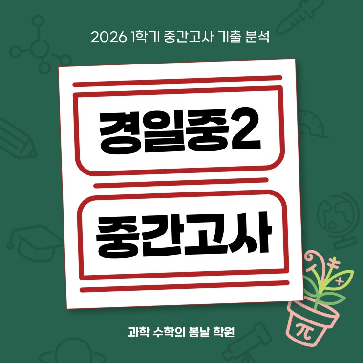 안녕하세요. 과학 수학의 봄날 학원입니다. 시험 준비로 분주했던 시간들이 지나고 경일중 2학년 1학기 중간고사가 마무리되었습니다. 이번 시험은 단순한 점수 확인을 넘어 현재 자신의 실력과 학습 방향을 점검해볼 수 있는 중요한 기준점이 되는 시험이었습니다. 중학교 2학년 1학기는 중1에서 배운 대수 개념을 바탕으로 식의 활용이 본격적으로 확장되는 시기입니다. 개념을 바탕으로 식을 세우는 힘과 풀이 과정을 논리적으로 전개하는 능력이 더욱 중요해졌습니다. 문제를 맞았는지 틀렸는지에 집중하기보다는 어떤 개념에서 막혔는지, 풀이 과정에서 어떤 실수가 있었는지를 돌아보는 것이 앞으로의 성적을 좌우하게 됩니다. 이번 시....... <img src="https://blogthumb.pstatic.net/MjAyNjA0MjhfNzYg/MDAxNzc3MzYxMzM1MzQw.EwGGo-JQJ0FcftXsaUMpQT551h7PH-etLFbPaPwE-6og.WyIqbfLq5nUA_EmmDCaXEe3dGYL-H7mpZzRPpuqdoIwg.JPEG/26-1_%B0%E6%C0%CF%C1%DF2_%C1%DF%B0%A3%BA%D0%BC%AE.jpg?type=s3" />