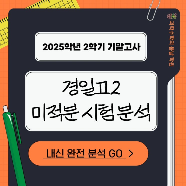 안녕하세요, 과학 수학의 봄날 학원입니다. 벌써 2학년 과정을 모두 마무리하고 이제는 정말로 고3 수험생이 될 시간이 다가왔네요. 올 한 해 동안 학교 수업, 수행평가, 모의고사, 내신시험까지 정말 많은 과정들을 지나오느라 몸도 마음도 참 바빴을 것이라 생각합니다. 특히 이번 기말고사는 그동안 배운 미적분 전 범위를 아우르는 시험이었기 때문에 결코 가볍지 않은 시험이었을 거예요. 비록 결과가 기대만큼 나오지 않은 친구들도 있겠지만 이 시험이 끝이 아니라 이제 시작될 고3 여정을 준비하는 중요한 체크포인트라고 생각해 주세요.✨ 그럼 지금부터 경일고 2학년 2학기 미적분 기말고사 분석 함께 살펴보겠습니다. 25 경일....... <img src="https://blogthumb.pstatic.net/MjAyNjAxMDZfMjYz/MDAxNzY3Njk4MzU1MjI0.2IeCdrFqBzFKFXJgLos9t1r-JSAy7hqaan-QegJf-2Eg.GWsLoPvmsxTN5rsTqFz0P8gq3h-WSMFqrWZXuEDUdb4g.JPEG/1.jpg?type=s3" />