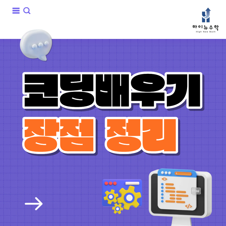코딩배우기를 고민하는 중고등학생이 확실히 늘었습니다. 단순히 컴퓨터를 잘 다루고 싶어서만은 아닙니다. 코딩을 해보면 생각을 정리하는 방식이 달라집니다. 문제를 쪼개고, 조건을 세우고, 결과를 검증하는 습관이 생깁니다. 이 과정은 수학 공부와 거의 같은 흐름입니다. 그래서 코딩배우기가 수학 실력에도 도움이 된다는 말이 자연스럽게 나옵니다. 안녕하세요. 부산 강서구 명지동에 위치한 하이뉴수학학원입니다. 우리 아이의 수학 실력 향상과 자신감을 책임지는 하이뉴수학학원입니다. 저희는 단순한 문제 풀이가 아닌, 개념 이해와 문제 해결 능력 강화를 목표로 합니다. 학생 개개인의 수준에 맞춘 맞춤형 학습과 체계적인 학습 관....... <img src="https://blogthumb.pstatic.net/MjAyNjAzMDVfMTIw/MDAxNzcyNzEzNTAzNDcz.Jdm2jQsgvssqUex8c47xsBViI0KE7LuDGDdWcjwObQcg.epae7LtpOYCqUUWeaU8C_mCTzTOx1Jb2-jhbndYQKMUg.PNG/%C4%DA%B5%F9%B9%E8%BF%EC%B1%E2_%BD%E6%B3%D7%C0%CF.png?type=s3" />