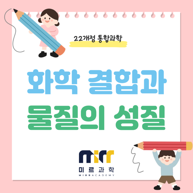안녕하세요 수많은 수업 경력으로 쌓아온 노하우를 바탕으로 학생들의 과학을 책임지고 있는 곳 개개인의 특성에 맞춰 학생들의 유대감과 상호작용을 중시하는 곳! 해운대 미르과학입니다 :) 오늘은 통합과학에서 [화학 결합의 종류와 물질의 성질]에 대해서 알아보도록 합시다! 화학 결합을 알아보기 전 18족 원소에 대해 알아봅시다! 헬륨, 네온, 아르곤처럼 18족에 속하는 원소들은 이미 가장 바깥 전자 껍질이 가득 채워져 있어 매우 안정적이에요 다른 원소와 반응하거나 결합하지 않고 홀로 존재하길 좋아한답니다 그래서 18족 원소를 비활성 기체라고도 부른답니다 :) 18족 원소들을 제외한 다른 원소들은 어떨까요? 다른 원소들은 화학 결....... <img src="https://blogthumb.pstatic.net/MjAyNjAzMDVfMTY2/MDAxNzcyNzE0OTY0NTU4.ji0NOY59pVDvQss3bj5HHLc6ps7aDBJ3wsKzamORR9gg.IgzZTIlbmAIcnaN_0stlxy7uLjYAym03R1s4lwlAnBEg.PNG/1.png?type=s3" />