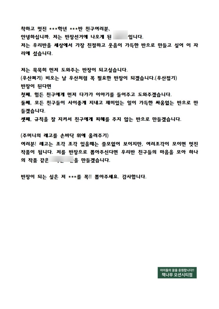 책나무 오션시티_학급 임원 선출을 위한 연설문 예시!!