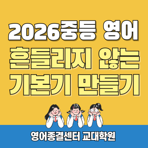 안녕하세요. 거제동 중등 영어 학원 영어종결센터 교대학원장입니다. 우리 아이는 단어는 외우는데 문장 해석을 못 해요. 문법 개념은 아는데 서술형만 나오면 손을 못 대요 많은 학부모님이 상담실에서 털어놓으시는 고민입니다. 중등 영어는 단순히 점수 몇 점을 받는 것이 목표가 되어서는 안 됩니다. 고등학교 가서도 흔들리지 않는 학생들의 공통점은 단언컨데 '기본기'라고 말할 수 있습니다. 그래서 중등 영어는 고등 내신 1등급을 버텨낼 수 있는 기초 체력을 만드는 골든타임이어야 합니다. 오늘은 거제동 중등 영어, 영어종결센터 교대학원만의 독보적인 시스템, 영어 종결자 3총사 시리즈를 통해 중등 영어 기초를 어떻게 뿌....... <img src="https://blogthumb.pstatic.net/MjAyNjAzMDlfMjkw/MDAxNzczMDQ2MTAxMjQ2.pnkgoZfBkUbuFRjHbp5kxoO904G3VKJ3J0l4RQTm02Mg.tShyqlJNdlZpnxrt9ebVzrUWt25pUlnxF3hh8puw8pYg.PNG/%B1%B3%C0%B0%C1%A4%BA%B8-002_%2811%29.png?type=s3" />