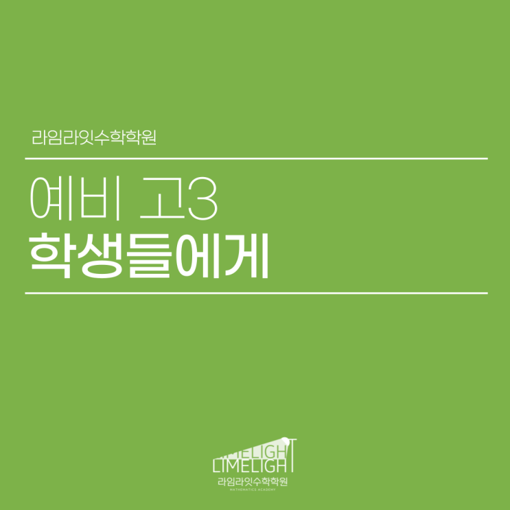 안녕하세요. 라임라잇수학학원입니다. 그동안 수능을 치른 고3들 그리고 수험생들 모두 수고하셨습니다. 하지만 지금 쓰는 글은 아직 시험을 치르지 않은 현재 고2 이하의 학생들을 위한 글입니다. 이번에 처음 시험을 치른 고3 그리고 재수생들은 느꼈을 겁니다. 입시라는 건 전략도 중요하지만 결국엔 본인의 태도와 멘탈, 그리고 그런 태도와 멘탈을 가지고 끝까지 버틸 수 있는 체력과 끈기, 그리고 마지막으로 스스로를 돌아볼 줄 아는 메타인지가 정말 중요합니다. 결국 내가 지금 당장 얼만큼 할 수 있는지가 중요한 게 아니라, 내가 성장을 하기 위해 어떤 노력을 하며, 그 노력을 계속 지속할 수 있는지가 정말 중요합니다. 그리고 그러....... <img src="https://blogthumb.pstatic.net/MjAyNTEyMDhfMjQ3/MDAxNzY1MTczNTYzMDIz.qWc6Z32nt7GSrVcCxITLci9LvoYVi99Du0MVI48BoMkg.8GUUK7QQoOOpRhrCcJug5Pb7wK9OTIwmVacw3bvJG-Ug.PNG/5%BF%F9%C6%AF%B0%AD-%BD%C3%B0%A3%C7%A5-%BD%E6%B3%DA-001.png?type=s3" />