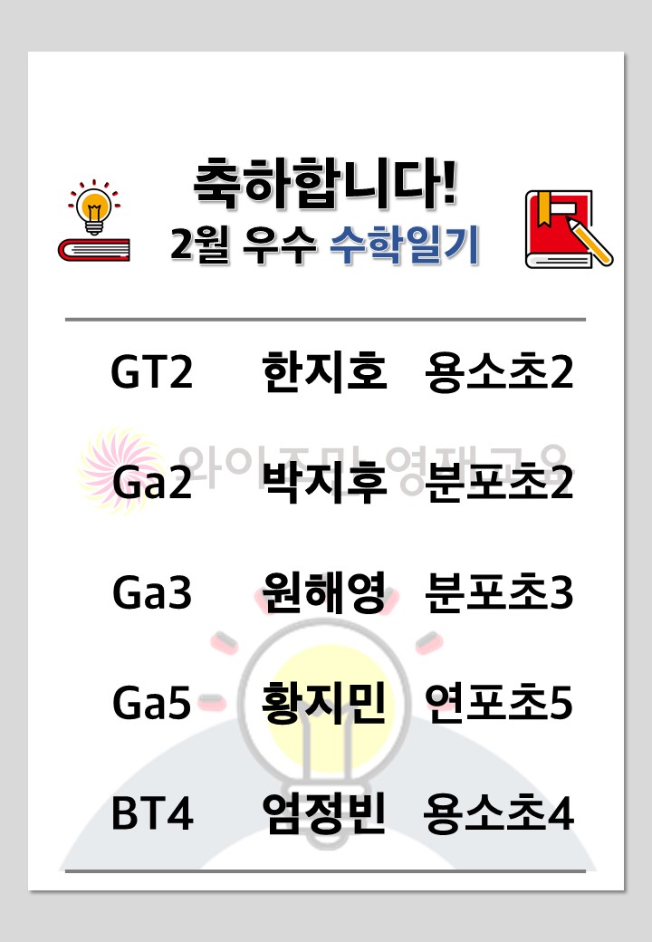 2026년 2월 수학 과제 우수자 명단입니다.