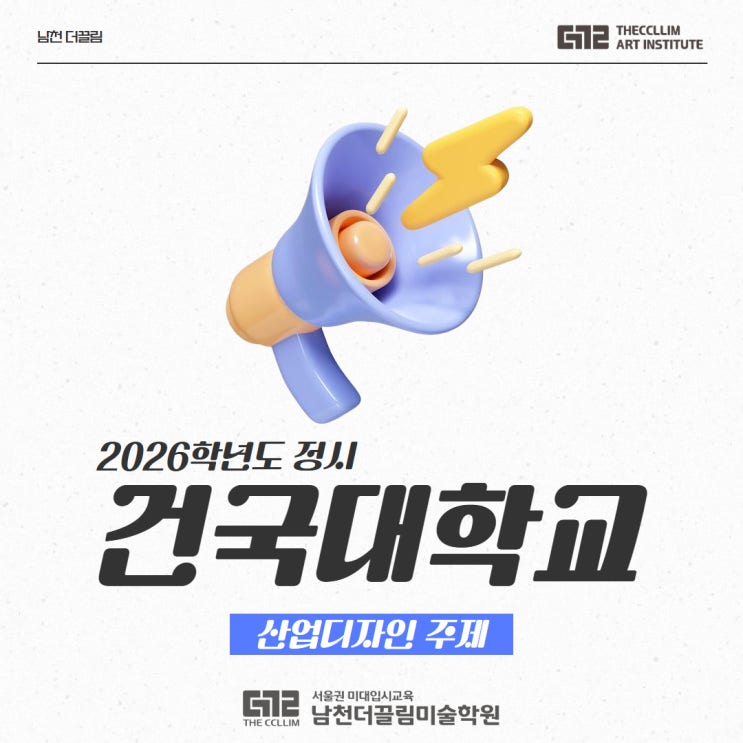 #기초디자인#부산미술학원#부산미대입시#부산미대입시준비 #부산미대#남구기초디자인학원#남구미대입시 #남구입시미술학원#수영구미술학원#남구기초디자인#수영구미대입시#남천입시미술학원#금련산미술학원#부산미대입시#소수정예수업#원장님특강#실전처럼#꼼꼼하게#부산미술학원#남천미술학원#남천동미술학원 소수 정예 + 원장님 직강 + 서울 강남 교육시스템! 이 모든 것을 한 곳에서 누리다! 남천 더끌림 미술학원 안녕하세요~ 부산입시미술학원 남천 더끌림 미술학원 입니다. 2026년이 벌써 3월인데요? 이번에 올릴 주제는 2026년도 정시 문제를 올려보겠습니다~ 오늘 보여드리는 소재는 2026년 건국대학교 산업디자인학과 정시 문제입니다. ....... <img src="https://blogthumb.pstatic.net/MjAyNjAzMTRfMjcw/MDAxNzczNDU5MTk2NTQz.wbwHdG-zBqCJxWl-K-6A4-w0aNn-6TKdtfCH3IeK0CIg.ySfGZn_9JmhcwxMSZcimtG2u7Oelu5rqicJFi5-0kr0g.JPEG/%B0%C7%B1%B9%B4%EB_%BB%EA%BE%F7.jpeg?type=s3" />