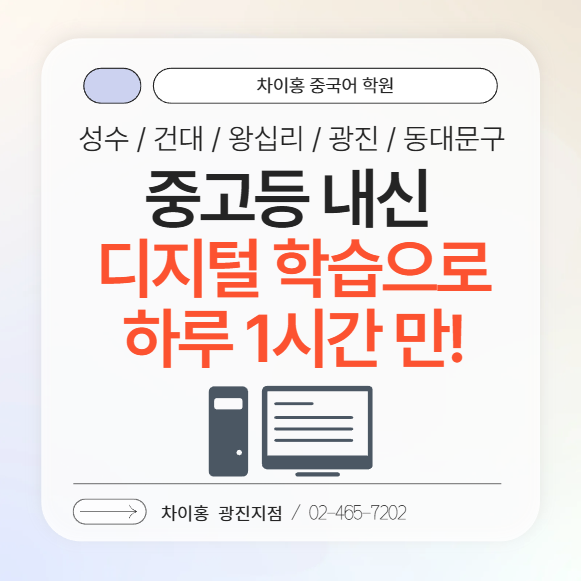 안녕하세요! 건대 중국어 내신 학원 차이홍 중국어 광진지점입니다! 요즘 학부모님들과 학생들 사이에서 중국어는 내신, 수능 성적을 위한 전략 과목으로 많이 선택되고 있어요. 특히 중간, 기말, 수행평가, 수능 모두 중요한 시험이다 보니 ‘어떻게 제대로 준비시켜야 하지?’ 하는 고민도 더 깊어지고 있고요. 그런데 막상 학교 수업만으로는 부족하고, 인강이나 회화 위주 학원은 학교별 시험에 딱 맞는 대비가 어렵다는 이야기도 많아요. 그래서 저희는 학교 내신과 수능, 둘 다 준비할 수 있는 실전형 커리큘럼으로 수업을 운영하고 있습니다. 바로 차이홍 유패스를 통해서요! 유패스 중국어는 어떤 수업인가요? 차이홍 유패스는 학생 스스....... <img src="https://blogthumb.pstatic.net/MjAyNTEyMDdfMTM1/MDAxNzY1MDQxNDkyOTMw.6GrlNh3FBwb617owTpUeLEWuM-4ZlKfTuyKjzLhTgigg.9JvlgXQPYx-mZubURmILUeckWTCO_8mcSRlgXk4zMbog.PNG/image.png?type=s3" />
