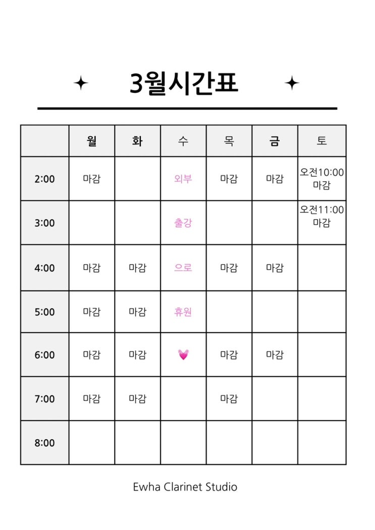 3월 레슨 시간표