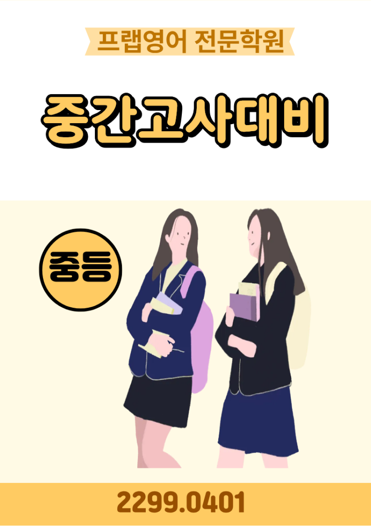안녕하세요.^^ 이번 중학생 중간고사는 학교마다 조금씩 상이 합니다. 우선, "빨리 보는 학교 부터 내신 대비가 시작" 됩니다.^^ 제대로 알고 공부 할 수 있도록 최선을 다해 지도합니다.^^ 학생들이 공부 한 부분에 있어서는" 성취감"을 느낄수 있도록 준비하는 시간이 될 것입니다. 너무 루즈하지 않게 준비 할 것이며, 중간중간에 평가도 이루어 지면서 놓치지 않고 끝까지 할 수 있도록 하겠습니다.^^ 새학기 첫 시험 모두 만족하는 결과가 나올 수 있도록 최선을 다하는 프랩영어학원이 되겠습니다.^^ 교육문의 010.2336.0527 <img src="https://blogthumb.pstatic.net/MjAyNjAzMDZfMTMz/MDAxNzcyNzgyOTA0ODM1.7qFAUIq0MchZMfudlLp1TXbYCRw8s7mYZngo2HTmcAwg.MSCE9fkXGSOaEY9C3P8-BI1ZuJMnEFaKpPIlU9k7NAUg.PNG/%C1%A6%B8%F1%C0%BB_%C0%D4%B7%C2%C7%D8%C1%D6%BC%BC%BF%E4._%2818%29.png?type=s3" />
