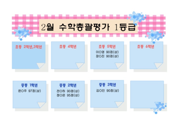 2월 월말평가 결과!! /행당역 지니플러스 영수학원