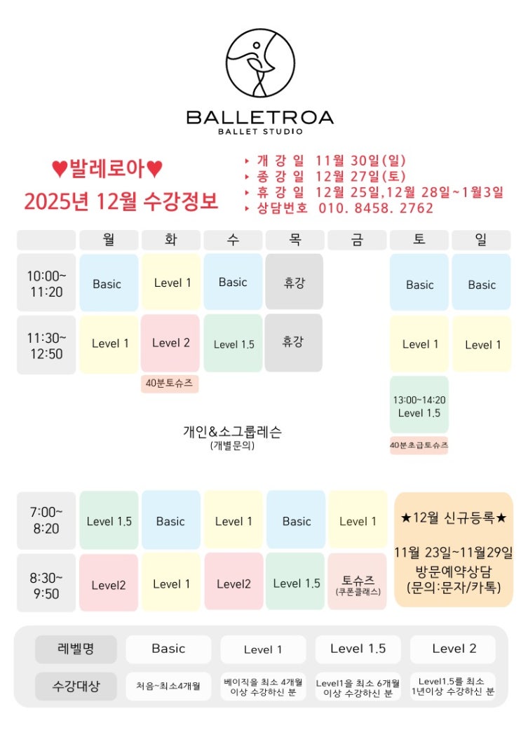 2025년 12월 성인발레 시간표 및 수강정보
