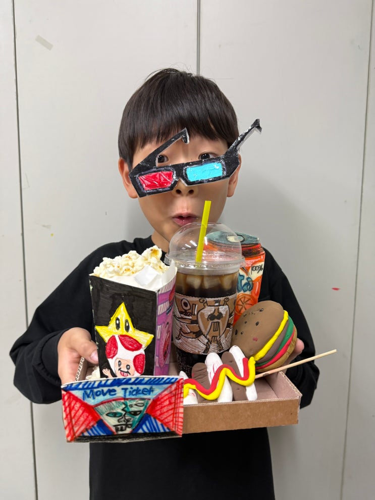 안녕하세요~! 텐즈힐 미술학원 아트스토리 미술학원입니다^^ 오늘은 아트스토리 친구들과 함께 영화관 간식 세트를 만들었답니다~^^ 전 시간에 진행했던 나만의 호작도(케이팝 데몬 헌터스 패러디) 연계수업 3탄 영화관 간식 세트 만들기를 준비했어요! 나만의 디자인으로 먹고싶은 팝콘상자를 만들어 맛있는 팝콘을 듬뿍 담아줍니다~^^ 감자튀김, 오징어,핫도그 등등 내가 좋아하는 간식도 맘껏 그려주기! 목 막히지 말라고 시원한 음료수까지 한상 차려드렸더니 이보다 행복할 수 없죠~ㅎ 과연 아트스토리 친구들은 어떻게 간식을 꾸며주었을까요~? 완성작을 공개합니다! 햄버거, 감자튀김, 핫도그, 샌드위치 등.. 다양한 음식을 예쁘게 그려 준....... <img src="https://blogthumb.pstatic.net/MjAyNTExMjZfMTQz/MDAxNzY0MTM5OTExNzQx.kcd39oO8VzlvPiSgBOK8j8_M9yUw8G4kYNBlDftoP7Ag.2pNVhp1mVIrorGfamZ-bYg0VrSnPrKSFty4FB04m6ykg.JPEG/KakaoTalk_20251001_134611883.jpg?type=s3" />