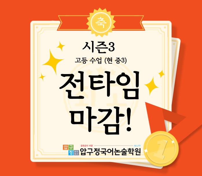 감사드립니다. 현 중3 고등 시즌3 수업 전 타임 마감 되었습니다. *****12월 26일 자사고(현대고) 발표 이후 1월 3일부터 현대고 합격생은 현대고 반으로 배정됩니다.****** ※ 지금은 인원이 조금 많아도 양해 부탁드립니다. 최선을 다해 최고의 성과를 얻을 수 있도록 관리 지도하겠습니다. [ 시즌3 수업 ] 고등 수업의 출발을 알리는 수업입니다. 주말과 평일 수업으로 진행합니다. 주말은 문학(100분) + 독서(100분) 주중은 모의고사 풀기(60분)+ 오답정리(30분)(질의 응답) ※ 주말은 정규반 수업으로 진행 ※ 평일은 모고 열공 학습반으로 운영합니다. 화수목금 3:00/3:30/4:00/4:30 중 1타임 -사전 예약한 모의고사 시험 시간에 등원 모의....... <img src="https://blogthumb.pstatic.net/MjAyNTEyMDRfMjIg/MDAxNzY0ODI5MDk2Mjgx.L9ZdF7x1FTyACBupyBE5ZreFh0crjPIx2zEnmX-Iabog.za-YVSQ9tbDHfrFLZxDcOzmFQfeV31yGqzZC5qAMtdsg.PNG/%C0%CE%BD%BA%C5%B8_%BD%C3%C1%F03_%B8%B6%B0%A8_%B0%F8%C1%F6-_%BA%B9%BB%E7%BA%BB.png?type=s3" />
