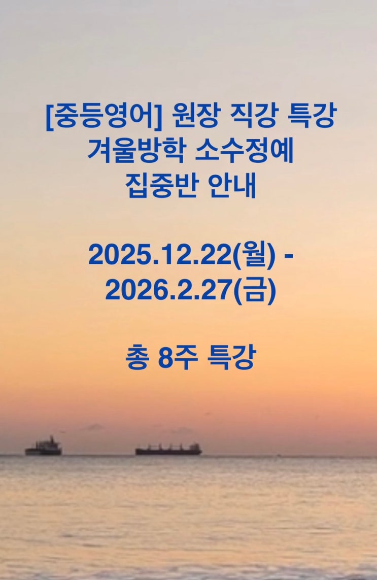 [서울숲 성수동 영어학원] 중등 영어 겨울방학 특강 안내: 경일해법영어, 연세대박사 김정아 원장 직강2025.12.22(월)-2026.2.27(금)