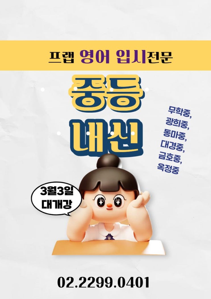 안녕하세요.^^ 이제 얼마 안있으면 새학기가 시작됩니다.^^ 다들 새학기 준비는 잘 하고 있나요? 예비중1 학생들은 학교마다 학력평가가 이루어 지고 있네요~~~^^ 마음 편안히 잘 보고 와요^^ 3월을 사실 시간이 정말 빠르게 갑니다.~~ 프랩영어전문 학원에서는 중등부 영어 모집을합니다.^^ 새학기에는 우리 모두 새로운 계획을 세우죠?^^ 오늘 수업시간에 중3학생과 이야기를 나누면서 많은 생각을 하게 되었어요~~ 아직은 학생이고 어린아이들이기에~~ 사실 저희때는 중3이면 다 컷다고 생각했는데~~ 요즘 학생들은 아직은 어린 부분이 있는거 같아요~~ 본인들도 잘 하고 싶은 마음이 있지만, 어디서 부터 시작을 해야 하는지 고민을 하더라구....... <img src="https://blogthumb.pstatic.net/MjAyNjAyMjFfMTk4/MDAxNzcxNjUzNDYxODAx.kSNzeysPke2K9JZ5EmaqzhCWFywujCi5q-MM0GsVrg8g.0FwR5Tgt809gBeC3mB69viNDq1LGXl4pqvnR3GDtb0gg.JPEG/%C1%A6%B8%F1%C0%BB_%C0%D4%B7%C2%C7%D8%C1%D6%BC%BC%BF%E4._%2864%29.jpg?type=s3" />
