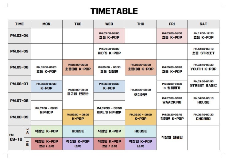 2026년 studi:ON dance 시간표