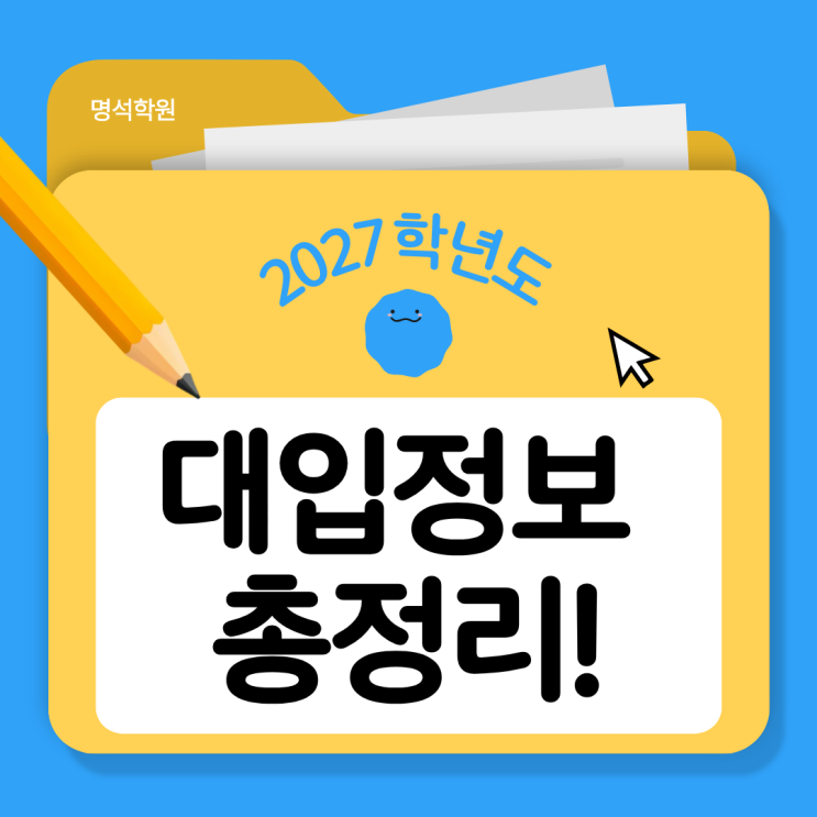 안녕하세요, 성동구 전교권의 선택! 명석학원입니다. 수시·정시 구조부터 반드시 알아야 할 변화까지 2027학년도 대입을 준비하는 예비 고3 학생과 학부모라면, 올해 입시의 큰 흐름을 정확히 이해하는 것이 무엇보다 중요합니다. 한국대학교육협의회가 발간한 『2027학년도 대입정보 119』를 살펴보면, 올해 대입은 단순한 성적 경쟁을 넘어 학생의 학교생활 전반과 공정성 요소를 함께 평가하는 구조로 더욱 정교해졌다는 점이 분명하게 드러납니다. 이번 글에서는 2027학년도 대입의 핵심 구조와 반드시 짚고 넘어가야 할 변화들을 정리해보겠습니다! 전체 모집인원과 기본 구조는 어떻게 달라졌을까? 027학년도 전체 대학 모집인원은 345,717....... <img src="https://blogthumb.pstatic.net/MjAyNjAxMTRfNjYg/MDAxNzY4Mzc1MjE4NDEy.2esxQfUz18zTN4s0xGpRrm0APwYpPQYKU5zn2xkAFxkg.Wy9ljn1eAno2-Bw25GOuGR3zMzrku168_bu5T4rJxy8g.PNG/%C1%A6%B8%F1%C0%BB_%C0%D4%B7%C2%C7%D8%C1%D6%BC%BC%BF%E4..png?type=s3" />