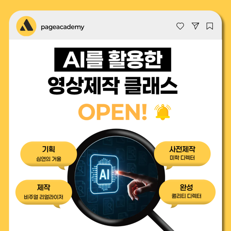 안녕하세요 누구나 작가가 될 수 있는 성수동 웹툰학원 페이지 아카데미입니다! 2026년의 첫 시작인 1월도 어느덧 반이 지나갔네요. 끝을 모르고 추워지는 날씨에 몸이 절로 움츠러드는 요즘입니다. ㅠㅠ 하지만 이럴 때일수록 더 부지런히 움직이며 나만의 경쟁력을 키워야겠죠? 바쁘게 움직여야 몸도 마음도, 그리고 우리의 커리어도 건강해진답니다! 모두 알찬 겨울을 보내시길 바라며 오늘의 특별한 소식을 전해드릴게요. 오늘은 페이지아카데미와 주식회사 아캐인이 함께 기획하여 새롭게 개강하는 [AI 영상제작 CLASS]를 소개해 드리려고 해요! 요즘 콘텐츠 시장에서 가장 뜨거운 키워드는 단연 AI 기술이죠. 아이디어는 있는데 영상....... <img src="https://blogthumb.pstatic.net/MjAyNjAxMjNfMTcw/MDAxNzY5MTI1ODc2NzMy.uSPU_wvt6kDOmM3wgezVJGJm_HFL_0AdFPnGrxwGPU4g.YKy7ep6TNlYnhIrIgUiHU9A9C_Q4PcFgPongoTjZcUsg.PNG/%BC%BA%BC%F6%B5%BF_%C0%A5%C5%F7%C7%D0%BF%F8-001_%282%29.png?type=s3" />