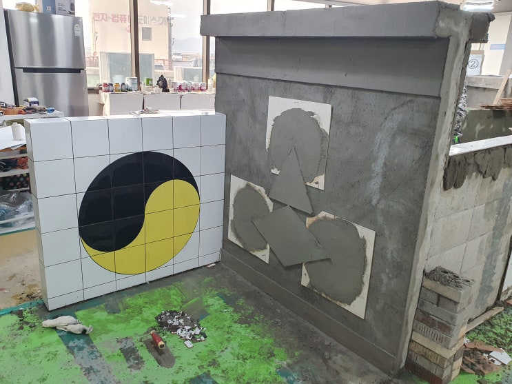 저희 부산건축시공전문학원은 4년 연속(2022년~2025년) 건축일반시공기능장을 배출한 유일한 학원으로 2026년 올해에도 건축일반시공기능장 합격자를 배출하기 위해 열심히 교육하고 있습니다. 이마 쪽에 잣대를 대서 턱 쪽에 발라준 후 초벌과 정벌로 나누어 정면에 미장을 해줍니다. 바탕면을 만들어 놓은 후 굳을 시간 동안 타일 현치도를 그려 타일 가공을 진행합니다. 다른 학원에서는 그라인더를 이용하여 작업을 하기 때문에 타일 가공이 잘 나오지 않습니다. 저희 학원에서는 유리칼을 사용하여 시간을 줄이면서 가공을 깔끔하게 할 수가 있습니다. 바탕면이 굳은 후 220mm을 표시한 후 10mm를 발라줍니다. 미장면이 굳는 동안 실을 쳐서....... <img src="https://blogthumb.pstatic.net/MjAyNjAzMTNfMTc5/MDAxNzczMzYxMzk4MTE2.H8Pm-CTos6PIPIn2hG08A5aPKRemMi2NYDRLuZfh7YQg.VZw1lyeNmsHbAgHxCdVoUrJVcXzoblF72M2Urj2g96cg.JPEG/KakaoTalk_20260313_091642750.jpg?type=s3" />