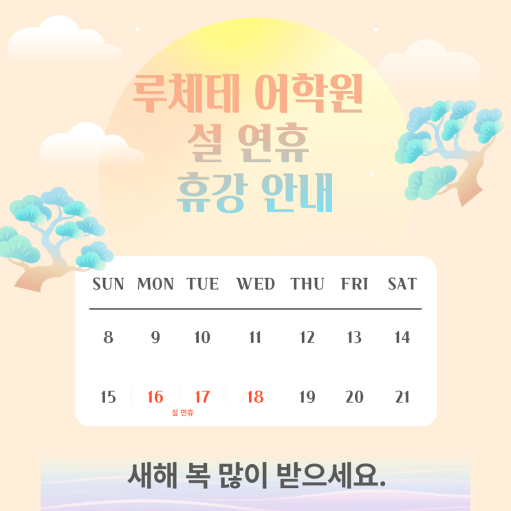 [정관영어학원] 루체테 어학원 2월 연휴 안내