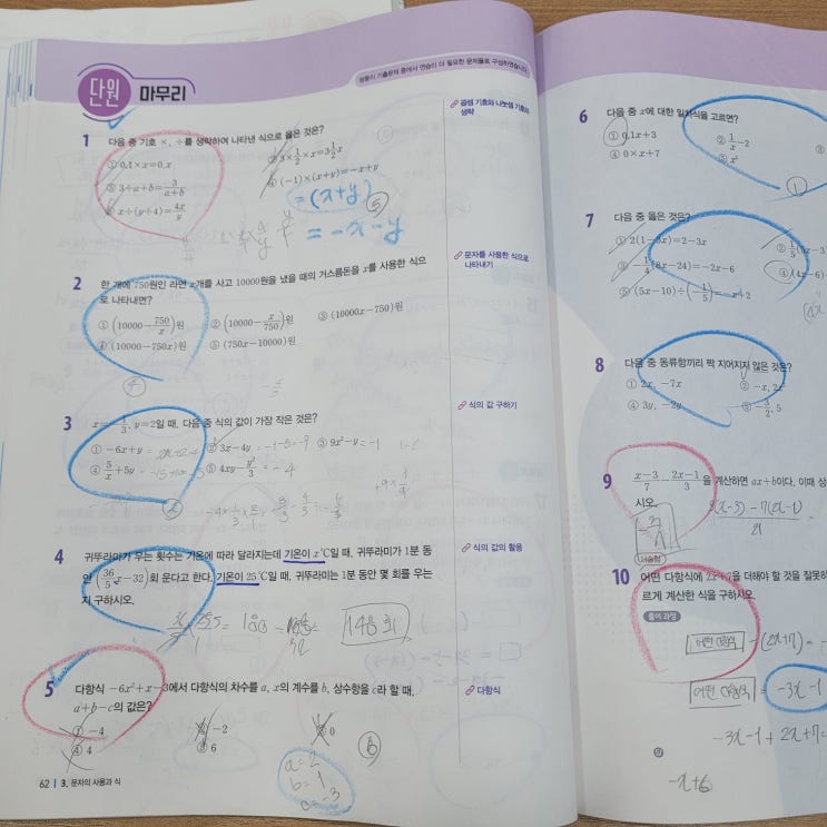 요즘 중학교 1학년 친구들은 '자유학기제'를 보내고 있죠? 지필고사가 없다 보니 마음이 살짝 붕 뜨기도 하고, 부모님들께서는 "이 소중한 시기에 우리 아이 공부를 너무 놓는 건 아닐까?" 하는 걱정도 많으실 거예요. 하지만 저희 학원의 풍경은 조금 다릅니다. 오늘 저는 중1 여학생 S의 수학 노트를 보고 가슴이 뭉클해져서 이렇게 글을 쓰게 되었어요. 감탄이 절로 나오는 꼼꼼한 '풀이 노트' 사진 속 노트를 한번 봐주세요. 중1 수학의 가장 큰 고비라고 하는 '일차방정식' 파트예요. 분수며 소수며 복잡한 계수들이 섞여 있어 어른들도 눈이 침침해지는 문제들인데, 우리 아이는 등호(=)의 위....... <img src="https://blogthumb.pstatic.net/MjAyNjAzMTBfOTMg/MDAxNzczMTU0NjcyMzIx.xF-5AidQJswoYyOYkGZhGf9j3GldokKidE-DIpCBmrYg.WJ9q8sre_PtKKWbmfK4IR_tKdrqzU_SfQT5iRaclq5Yg.JPEG/KakaoTalk_20260310_231056094.jpg?type=s3" />