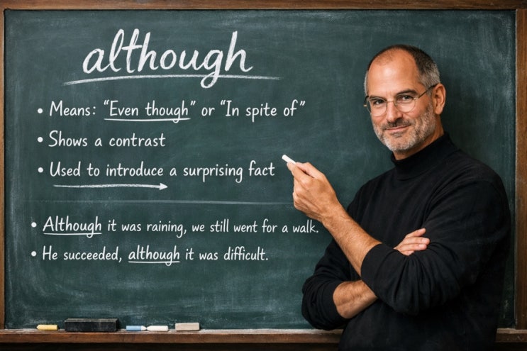 그럼에도 불구하고 although despite 차이점 알아보기 * although : 뒤에 완벽한 문장이 나옵니다. : 절은 주어+동사로 된 형태입니다. : 접속사 입니다. ex) Although it was raining, we still went for a walk. : 비록 비가 내렸음에도 불구하고, 우리는 여전히 산책을 다녀왔다. * despite : 전치사 구입니다. : 그렇기에 뒤에 명사, 대명사, 동명사가 옵니다. ex) Despite her young age, she manages the entire team very well. : 그녀의 어린 나이에도 불구하고, 팀 전체를 아주 잘 관리한다. despite와 in spite of 차이점을 확실히 구분하실 수 있으시겠죠? 둘 다 자주 쓰이는 중요한 표현이니, 예문과 함께 익혀두시면 영어 문장력이....... <img src="https://blogthumb.pstatic.net/MjAyNjAyMDhfMjU1/MDAxNzcwNTU5OTE3MDUw.tlPyGNiFuvf6PczohrQgQufra-uohE-DvwcikQQVTbwg.5FCHesHgBCmRiD2agOiDcOmomyhmdz7Kkfw__WGP5EYg.JPEG/A70E8590%A3%ADC280%A3%AD4199%A3%ADABCA%A3%AD0F6E9F5E90CB.jpg?type=s3" />