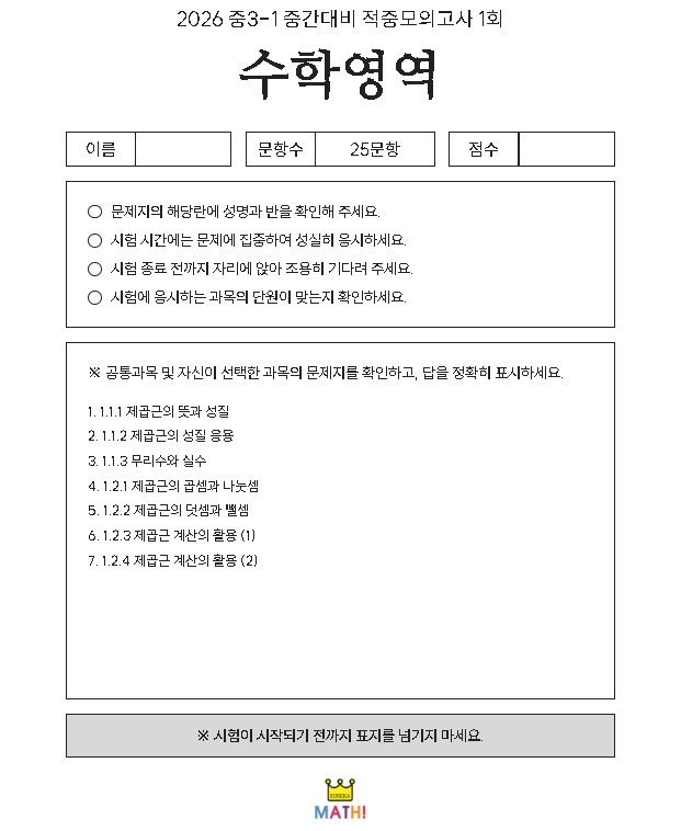 [정관수학학원-유레카원리수학] 2026-1학기 중간고사 완벽대비 '유레카 필승 전략'