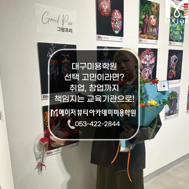 대구미용학원 선택 고민이라면? 취업, 창업까지 책임지는 교육기관으로! 안녕하세요. 대구미용학원 메이저뷰티아카데미미용학원입니다~ 지난 금요일 2026 인터내셔널 뷰티 디자인페어 시상식이 진행되었는데요! 이번 대회에서 대구미용학원 수강생들은 TOP30, 그랑프리, 대상, 금상을 포함해 출전 선수 전원이 수상하는 뜻깊은 성과를 이루어냈습니다~ 각자의 개성과 실력을 온전히 담아낸 결과라는 점에서 더욱 의미 있었는데요. 미용 분야는 단순한 기술 습득을 넘어 개인의 이미지와 개성을 표현하는 종합 예술 분야로 자리 잡고 있습니다. 특히 메이크업, 헤어, 피부 등 다양한 영역에서 창의력과 전문성이 동시에 요구되며 자신만의 감각을....... <img src="https://blogthumb.pstatic.net/MjAyNjAzMTdfMjQ1/MDAxNzczNzI4MTE0MDkx.qpiYWNYGTYI2oOlhgyqfLyUtTnvTTMKd93s24yHczX0g.ngOb9HWsnLWoKGvYfPr-OG4u4Epri-ZJr3pxlNpPREIg.PNG/%BA%ED%B7%CE%B1%D7-003_%288%29.png?type=s3" />